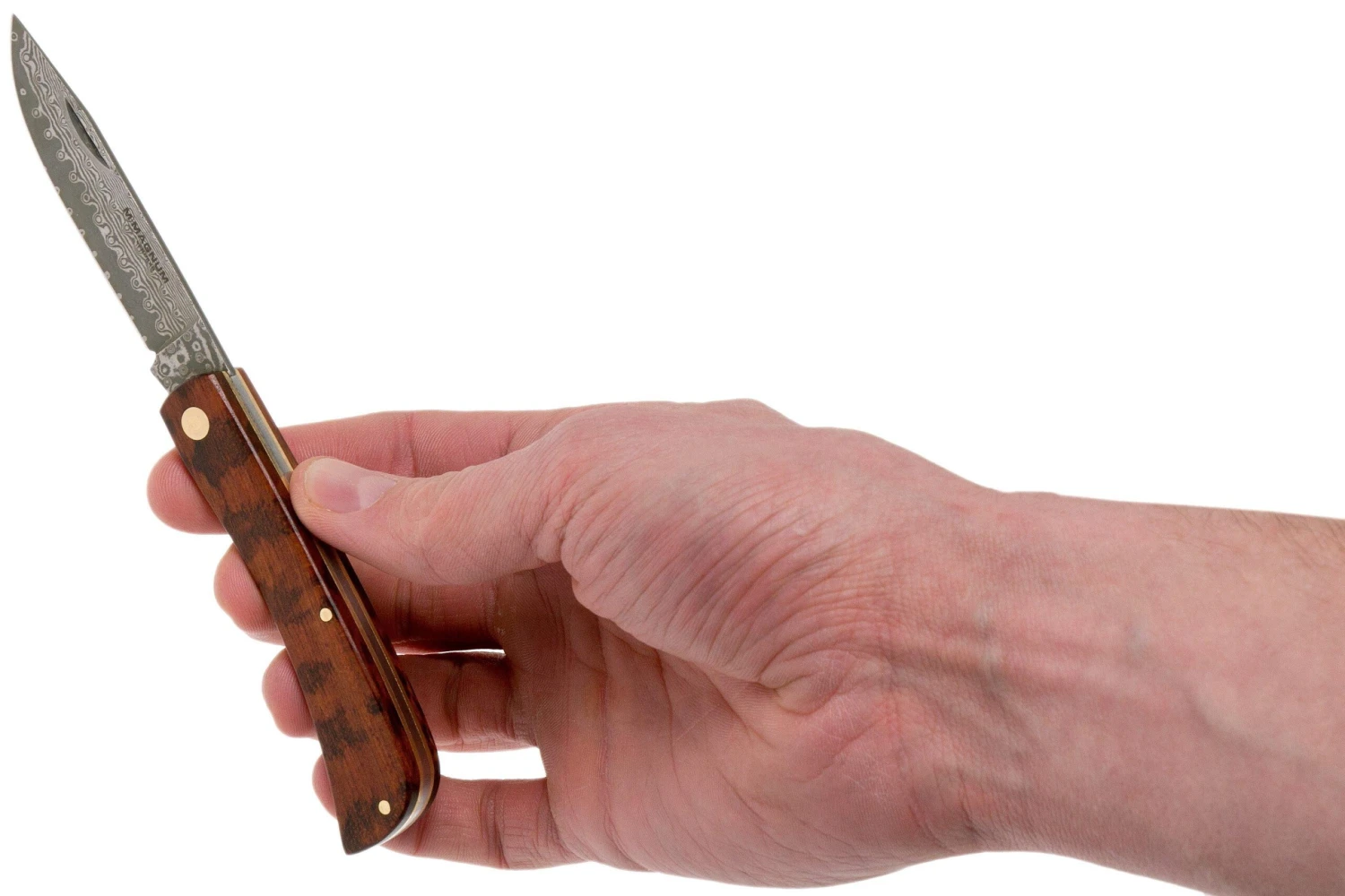 El Böker Magnum Snake Rangebuster Damascus 01RY141DAM es un cuchillo de caballero genial y asequible. Es sorprendente que se pueda fabricar un cuchillo con estos materiales por ese precio. El diseño puede recordar a las clásicas navajas Sod Buster, conocidas sobre todo por las marcas americanas tradicionales. Formas simples, increíblemente efectivas.