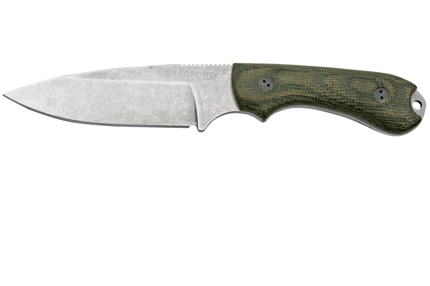 Bradford Guardian 4, 3D OD Green Micarta Guardian 4 CPM 3V, Full Flat Stonewashed 4FH-102-3V