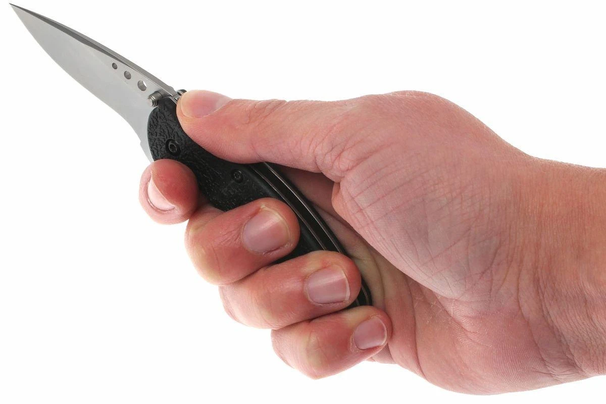 El Scallion de Kershaw es un cuchillo plegable muy compacto, que está equipado con apertura asistida. Esto puede parecer exagerado en un típico cuchillo pequeño EDC. Pero es increíblemente agradable que se pueda abrir el cuchillo muy rápidamente con muy poco esfuerzo. El cierre también es sencillo con una sola mano. La seguridad está garantizada por el linerlock y el bloqueo extra que impide la apertura involuntaria de la hoja. Este último se desliza justo sobre la punta de la hoja cuando el cuchillo está cerrado. Si lo deseas, este cierre también es fácil de quitar.