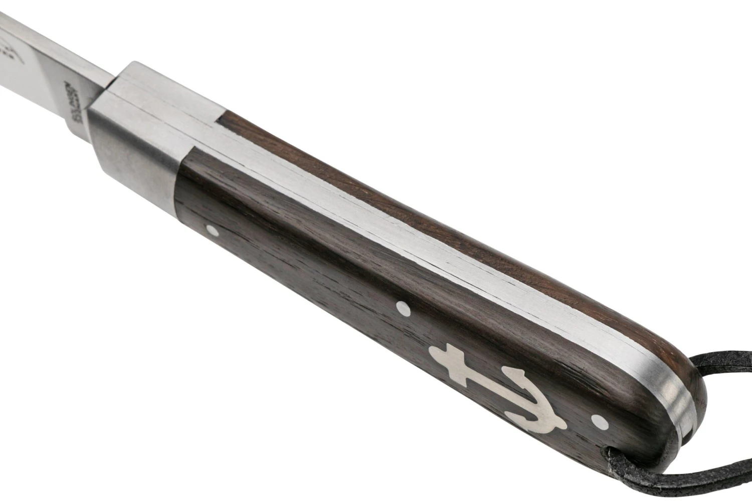Otter Anchor Knife 172 LB Large Carbon, Smoked Oak, Stainless Anchor, Leather Strap, Navaja