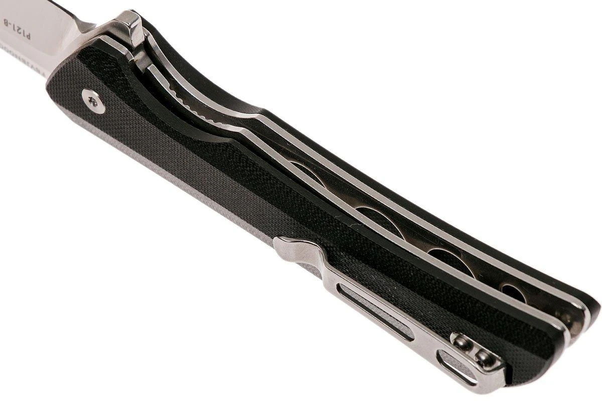 La Ruike P121-B es una navaja genial con un diseño atrevido. Debido a su diseño alargado se podría esperar una navaja fina. Sin embargo, Ruike hizo algunos ajustes. El mango de G10 es más grueso de lo que podrías esperar en un principio, lo que le proporciona un excelente agarre incluso cuando tus manos son un poco más grandes.