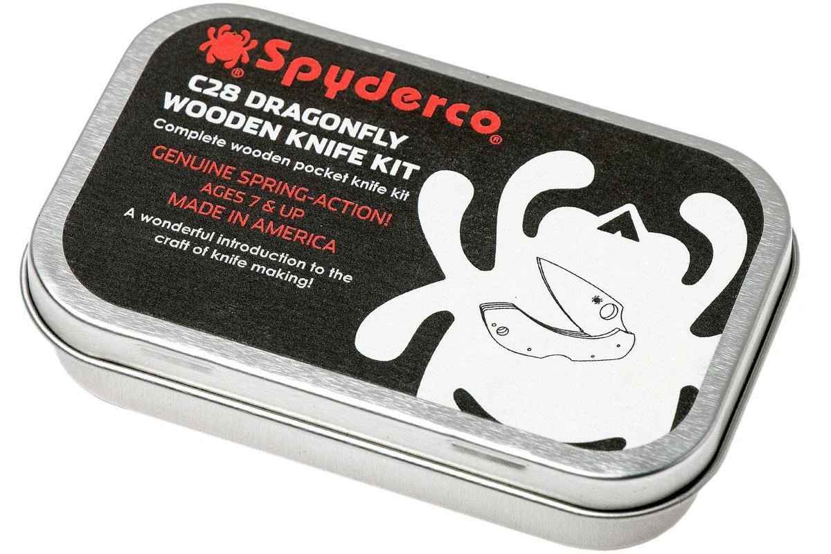 La Spyderco Dragonfly Wooden Kit es un modelo de madera de la famosa navaja Spyderco Dragonfly. Es un kit de construcción, así que tienes que montarlo tú mismo. También es ideal para regalar a los niños que son demasiado pequeños para tener el auténtico. La Dragonfly Wooden Kit viene con un manual de instrucciones. Es una forma increíble de aprender cómo funciona un bloqueo backlock real. El juego viene en una lata, un regalo estupendo y resistente.