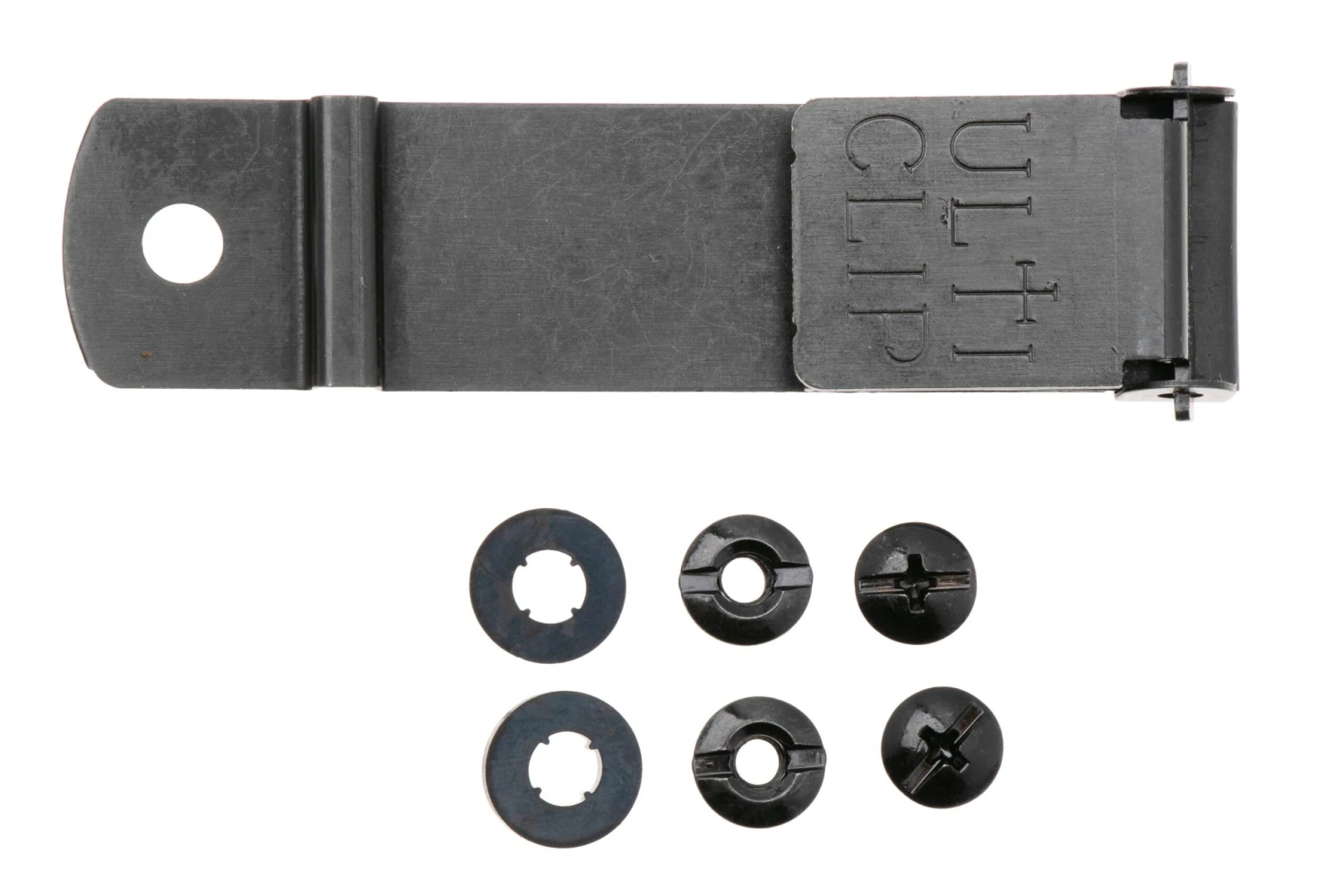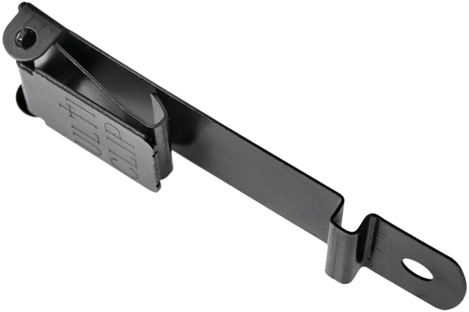 El UltiClip Classic es un resistente clip de acero que se puede acoplar a la funda de un cuchillo fijo o a una funda para llevarla con seguridad en el bolsillo. El clip hace que la funda no se salga del bolsillo. Al principio, abrir el clip puede ser un poco difícil. Esto, sin embargo, garantiza que esté bien sujeto a tu bolsillo. También puedes sujetar la funda al bolsillo de una mochila, por ejemplo.